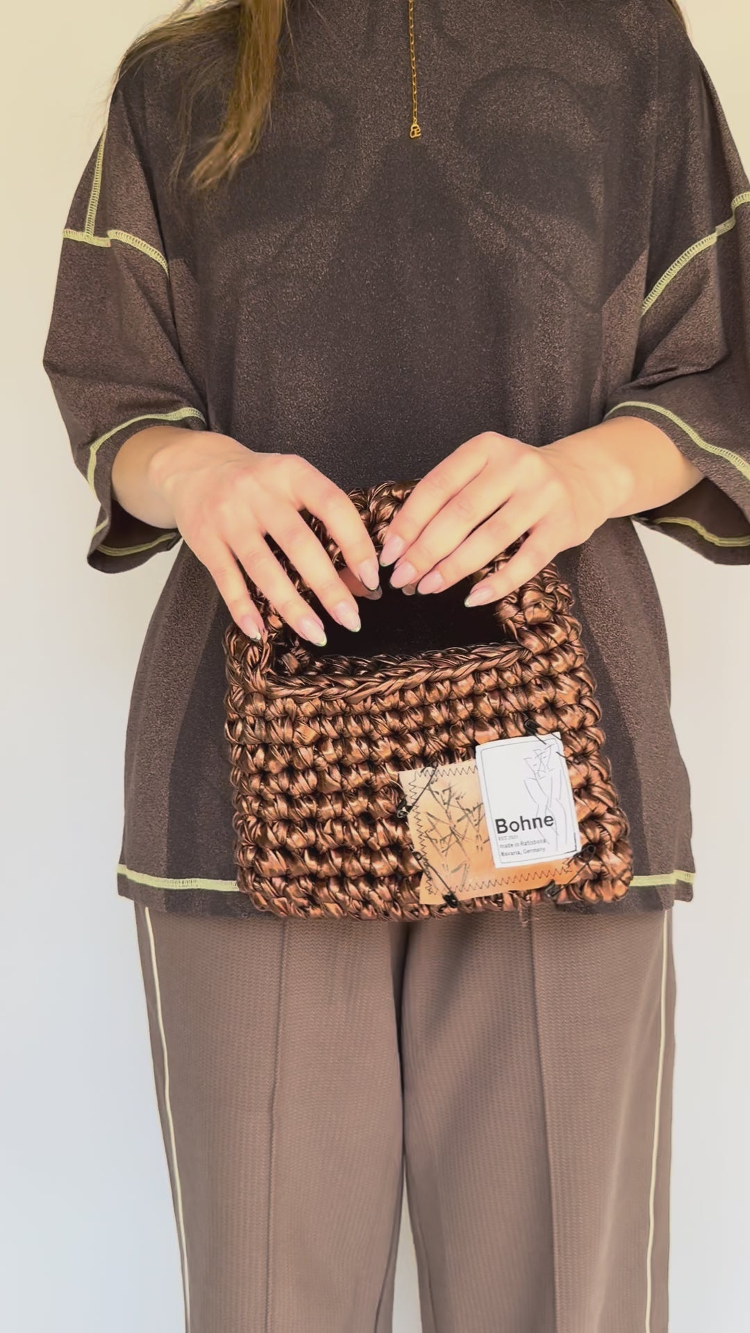 Crochet B-BAG aus recyceltem T-Shirt-Garn | metallic braun